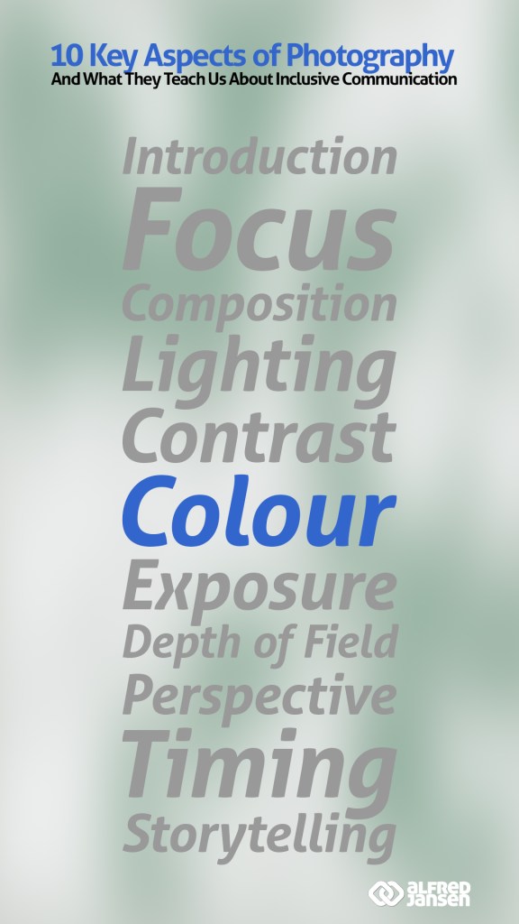 I’ve learned that photographers and communicators both benefit from thinking about colour in layers. Whether you’re crafting a brand story, leading a workshop, or capturing a scene with your camera, colour can be a tool for clarity, empathy, and presence. You don’t need to be a designer or an artist to use colour well—you just need to ask: What feeling am I creating here?